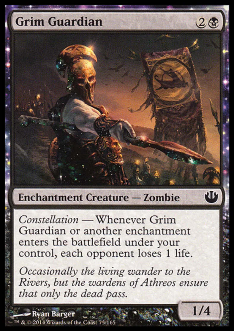 | Oracle Text | Constellation — Whenever Grim Guardian or another enchantment enters the battlefield under your control, each opponent loses 1 life. | ||