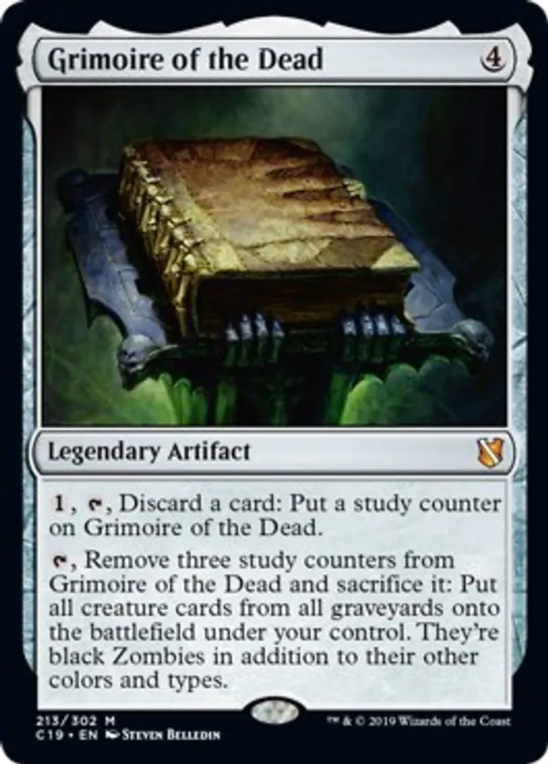 Magic: the Gathering (mtg) Mythic Rare Legendary Artifact Grimoire of the Dead from Commander 2019 (C19) last updated 2026-02-24 16:09:06
