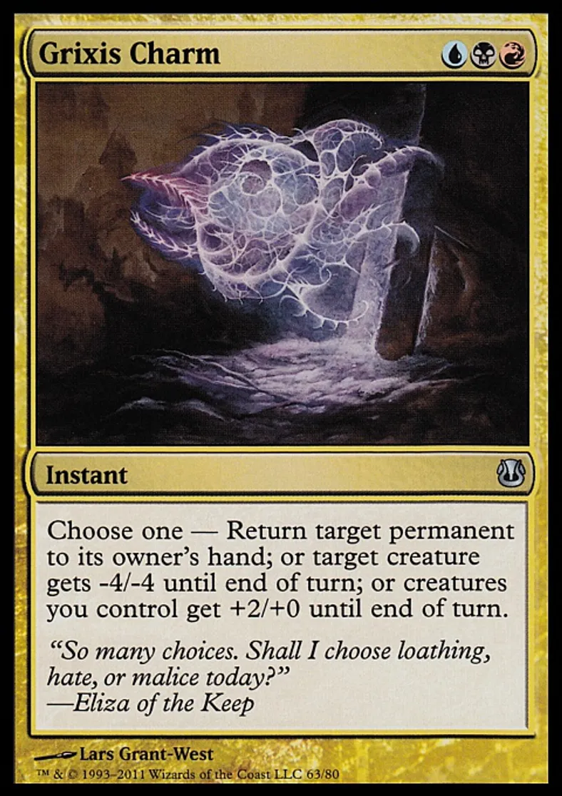 Grixis Charm is a Uncommon in the set Duel Decks: Ajani vs. Nicol Bolas.