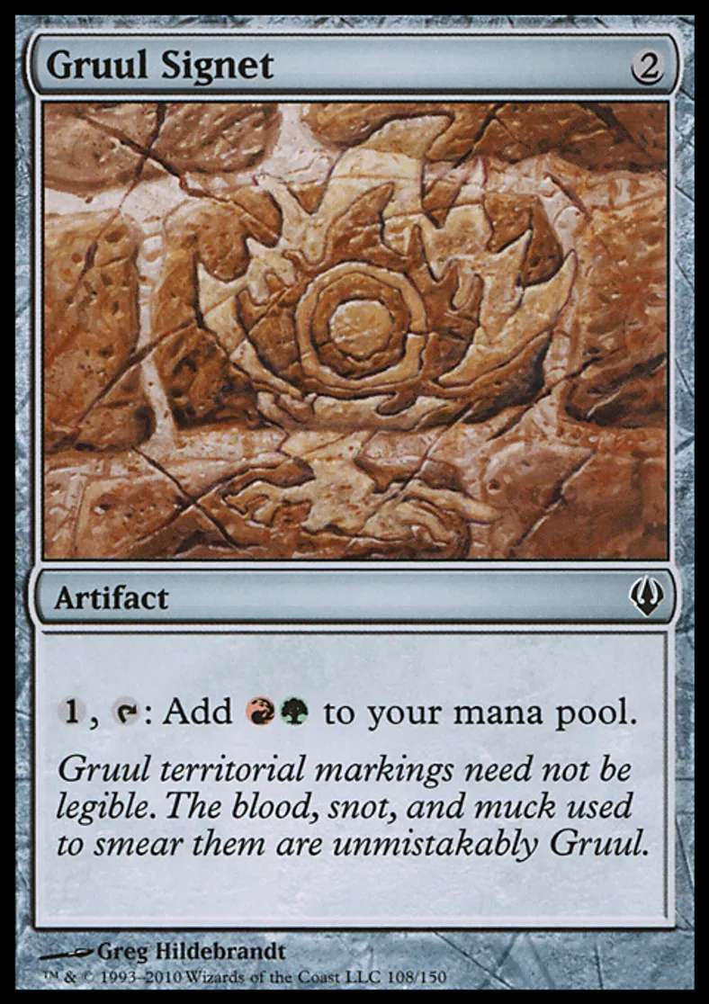 | Flavor Text | Gruul territorial markings need not be legible. The blood, snot, and muck used to smear them are unmistakably Gruul. | ||