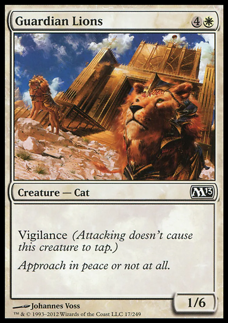 Magic: the Gathering (mtg) Common Creature - Cat Guardian Lions from Magic 2013 (M13) last updated 2026-02-21 17:09:33