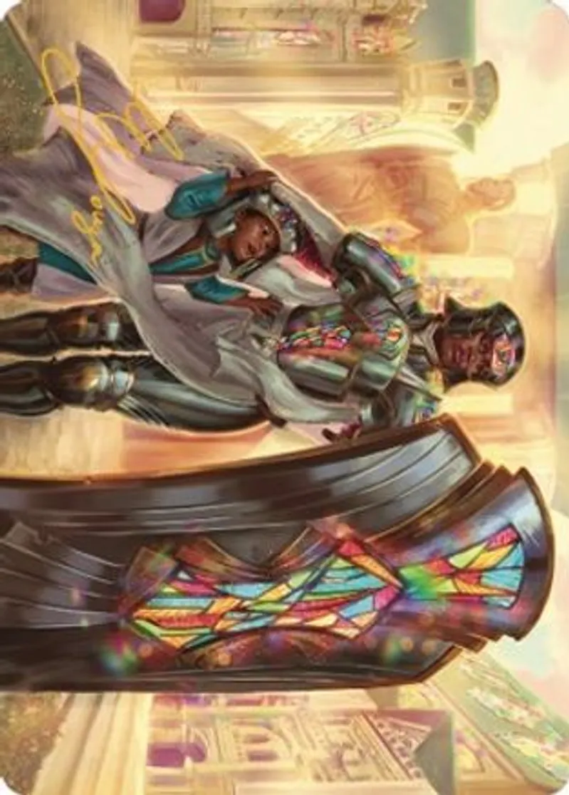 Guardian of New Benalia Art Card (Gold-Stamped Signature) is a Common in the set Dominaria United Art Series.