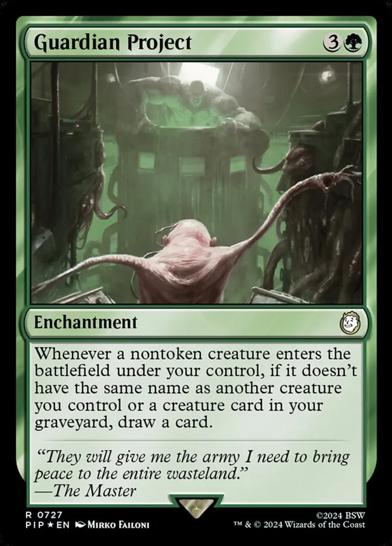 Magic: the Gathering (mtg) rare Enchantment Guardian Project from Universes Beyond: Fallout (pip) last updated 2025-12-13 15:57:31