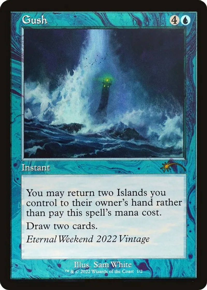 | Oracle Text | you may return two islands you control to their owner's hand rather than pay gush's mana cost. draw two cards. | ||