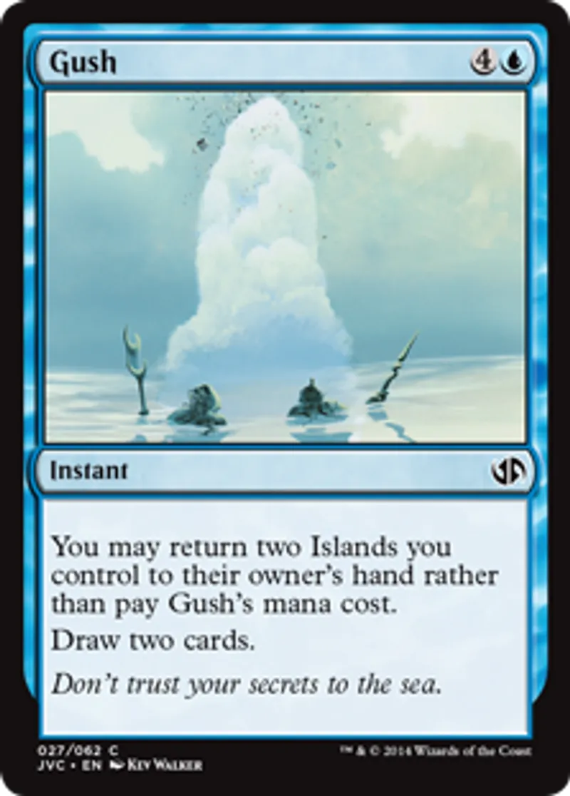 | Oracle Text | You may return two Islands you control to their owner's hand rather than pay Gush's mana cost. Draw two cards. | ||