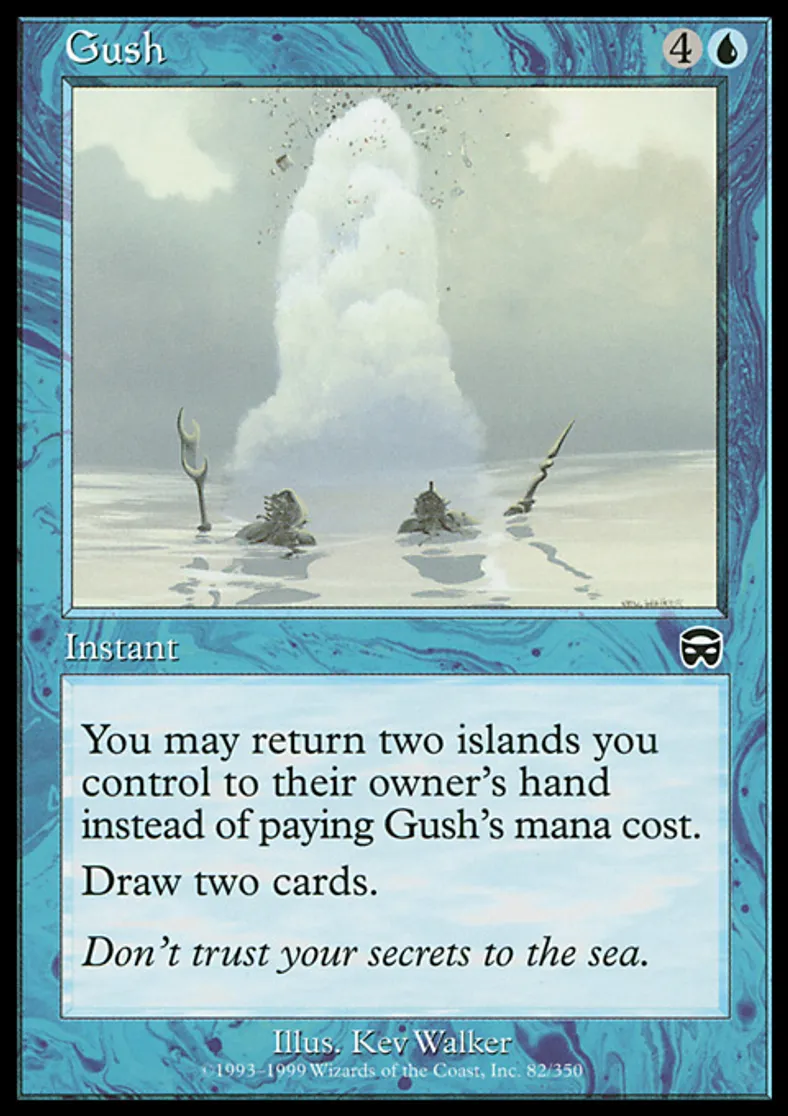 | Oracle Text | You may return two Islands you control to their owner's hand rather than pay Gush's mana cost. Draw two cards. | ||