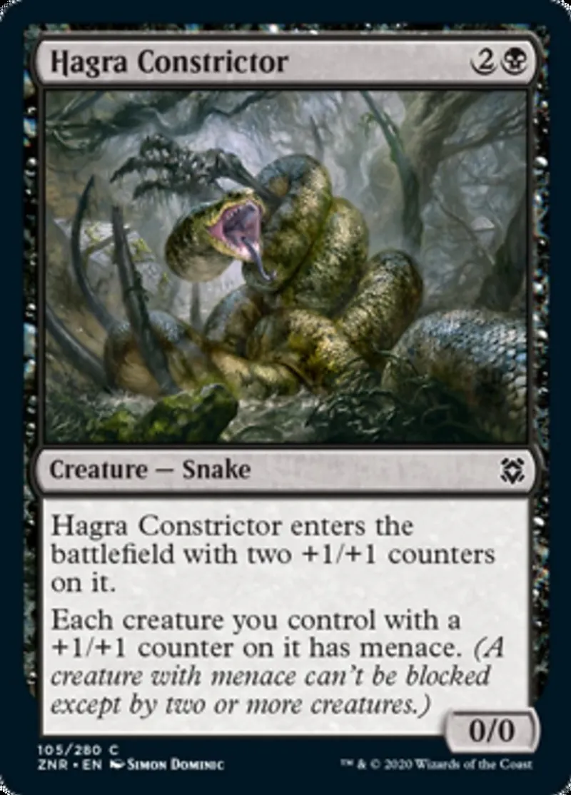 | Oracle Text | Hagra Constrictor enters the battlefield with two +1/+1 counters on it.