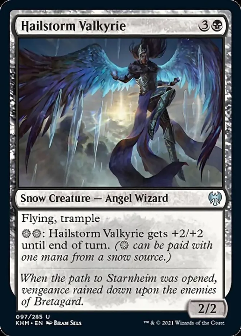 Magic: the Gathering (mtg) uncommon Snow Creature — Angel Wizard Hailstorm Valkyrie from Kaldheim (khm) last updated 2026-02-21 16:32:33