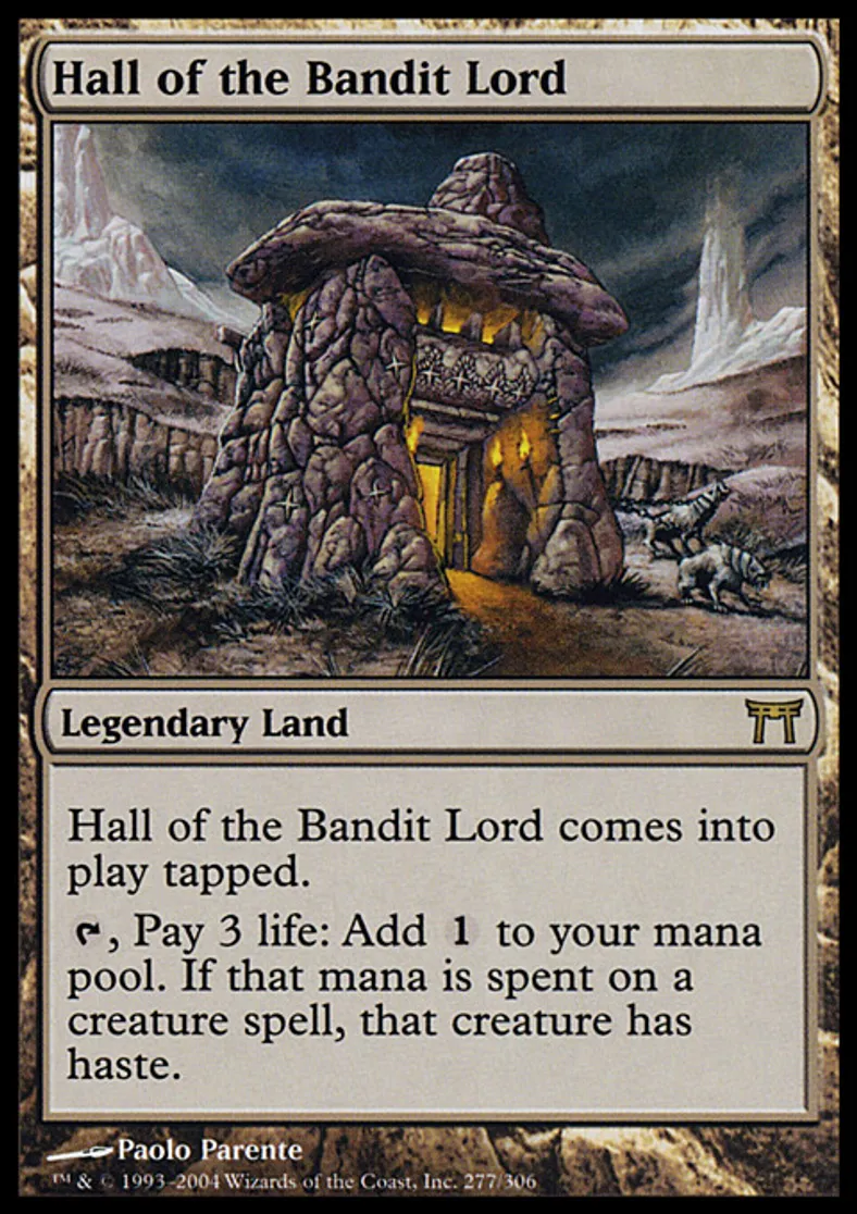 Magic: the Gathering (mtg) Rare Legendary Land Hall of the Bandit Lord from Champions of Kamigawa (CHK) last updated 2026-02-24 15:52:32