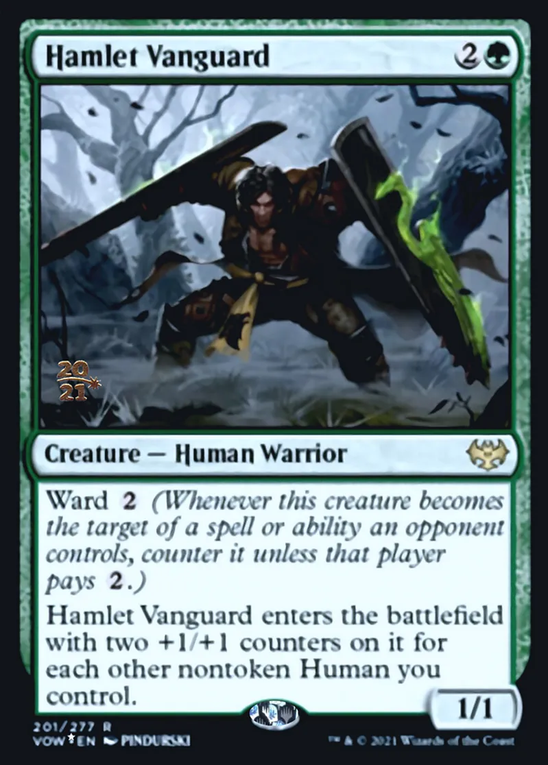 Magic: the Gathering (mtg) Rare Creature — Human Warrior Hamlet Vanguard from Prerelease Cards (pPRE) last updated 2026-02-21 16:02:02