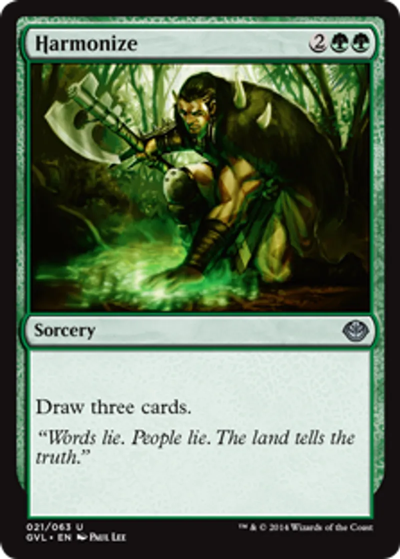 Harmonize (Garruk vs Liliana) is a Uncommon in the set Duel Decks: Anthology.