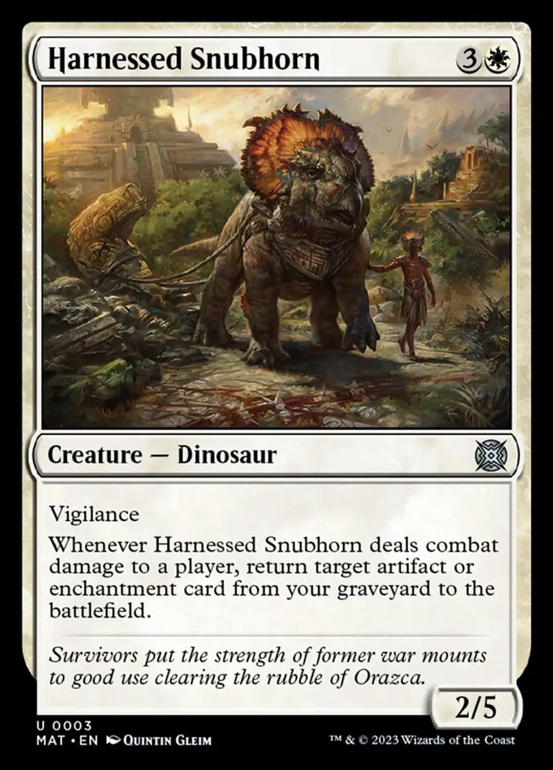 Magic: the Gathering (mtg) uncommon Creature — Dinosaur Harnessed Snubhorn from March of the Machine: The Aftermath (mat) last updated 2026-02-21 15:40:32