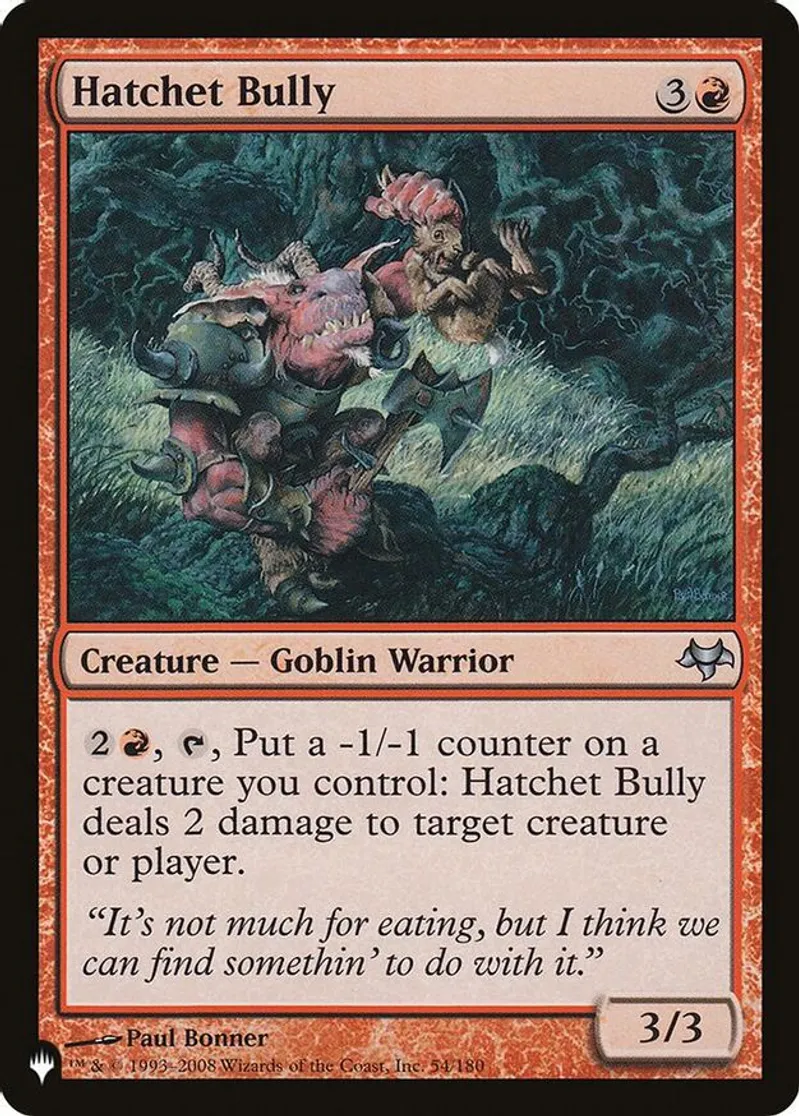 Magic: the Gathering (mtg) Uncommon creature — goblin warrior Hatchet Bully from The List Reprints (PLIST) last updated 2026-02-21 15:30:32