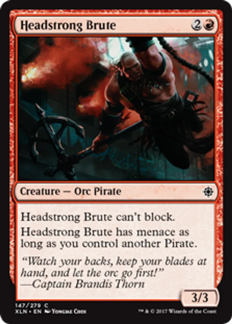 Magic: the Gathering (mtg) Common Creature - Orc Pirate Headstrong Brute from Ixalan (XLN) last updated 2026-02-21 16:48:04