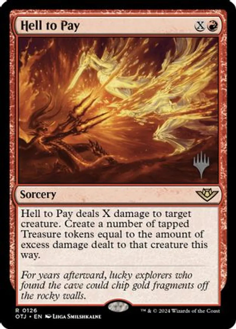Magic: the Gathering (mtg) Rare Sorcery Hell to Pay from Promo Pack: Outlaws of Thunder Junction (POTJ) last updated 2025-12-15 15:11:36