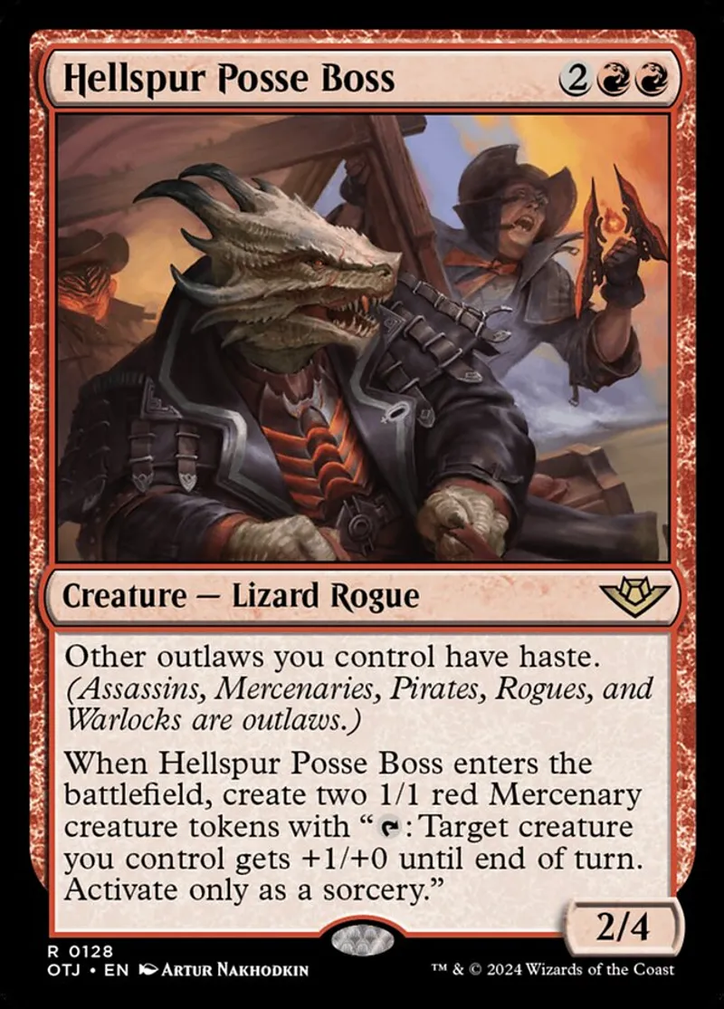 Magic: the Gathering (mtg) rare Creature — Lizard Rogue Hellspur Posse Boss from Outlaws of Thunder Junction (otj) last updated 2026-02-21 16:00:02
