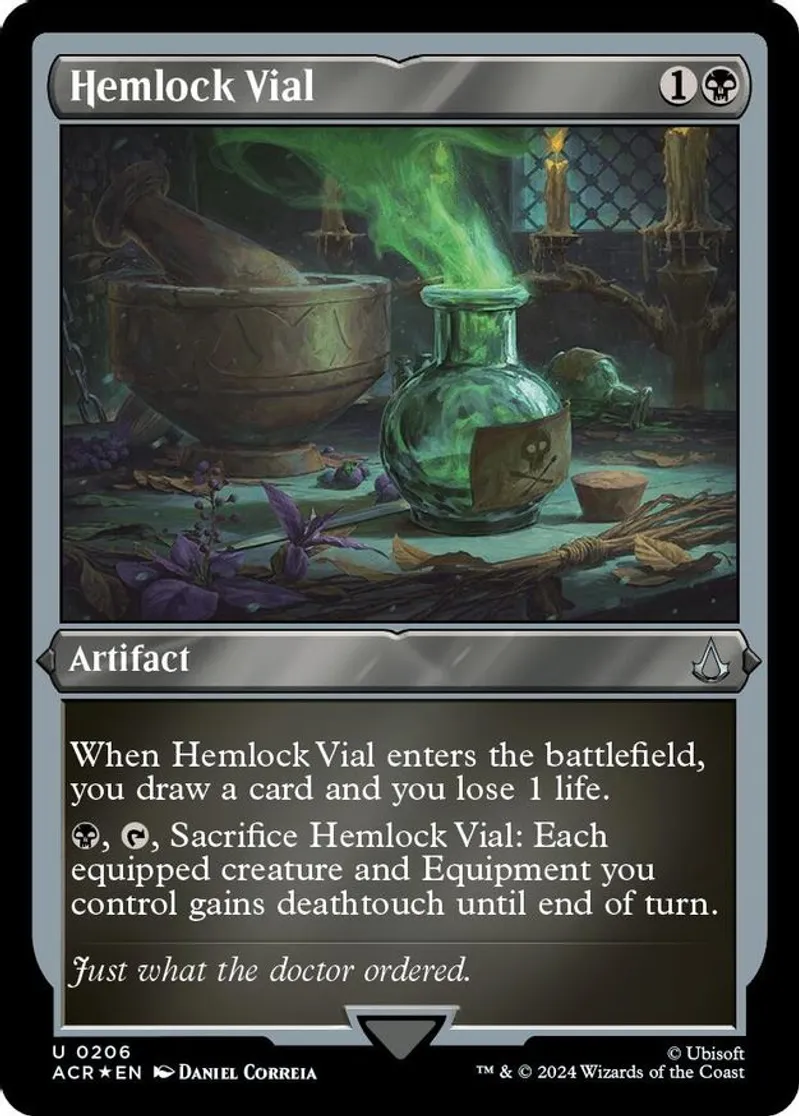 Hemlock Vial (Foil Etched) is a Uncommon in the set Universes Beyond: Assassin's Creed.
