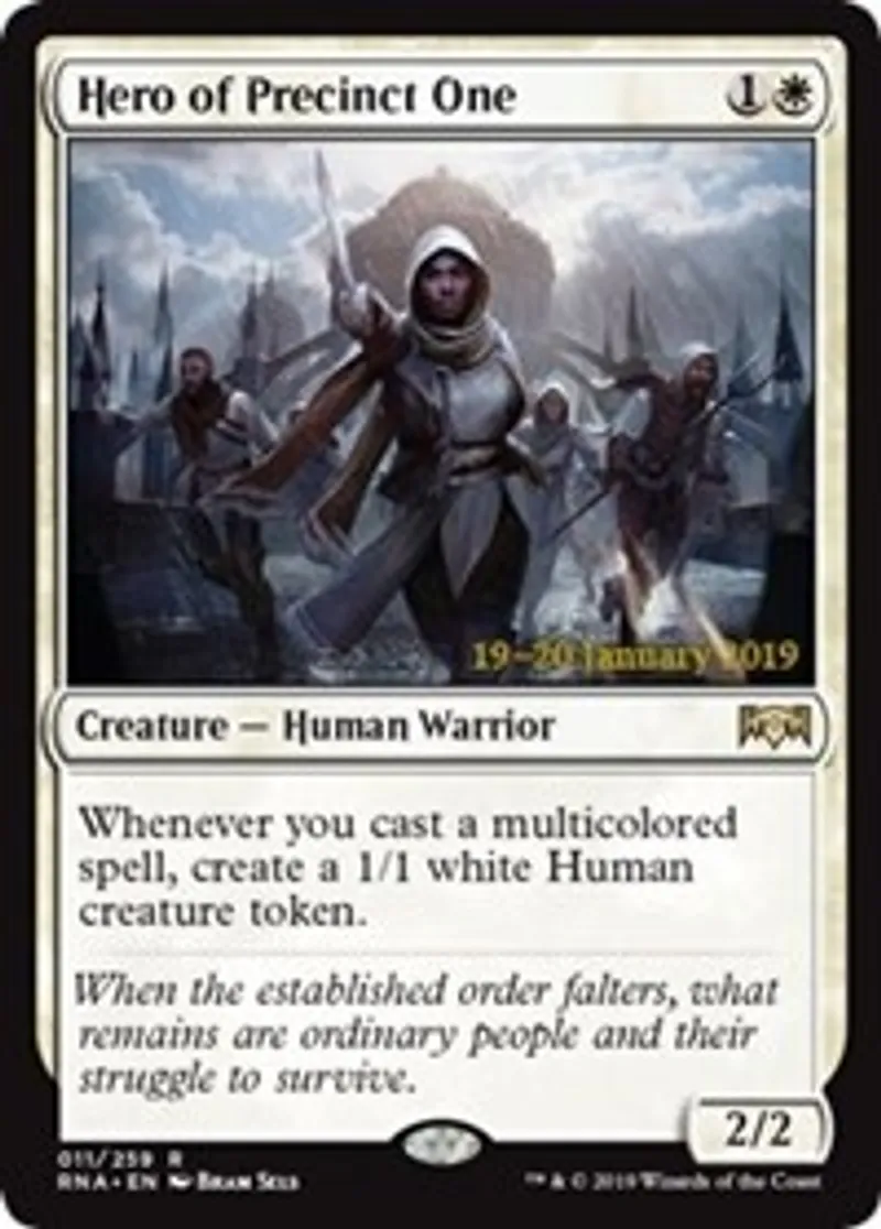 Magic: the Gathering (mtg) Rare Creature - Human Warrior Hero of Precinct One from Prerelease Cards (pPRE) last updated 2026-02-25 16:08:02