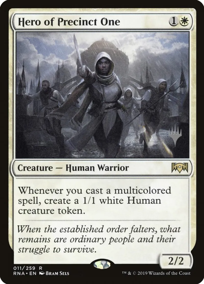 Magic: the Gathering (mtg) Rare Creature - Human Warrior Hero of Precinct One from Promo Pack: Throne of Eldraine (pELD) last updated 2026-02-24 15:26:36