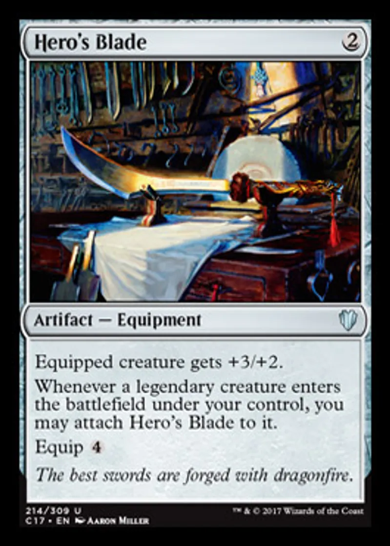 Magic: the Gathering (mtg) Uncommon Artifact - Equipment Hero's Blade from Commander 2017 (C17) last updated 2026-02-21 16:47:36