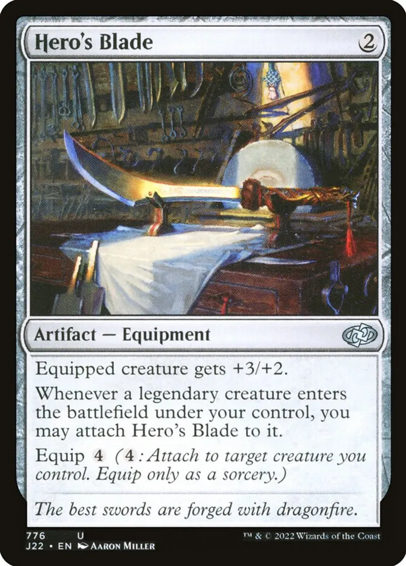Magic: the Gathering (mtg) Uncommon Artifact — Equipment Hero's Blade from Jumpstart 2022 (J22) last updated 2026-02-21 16:19:33