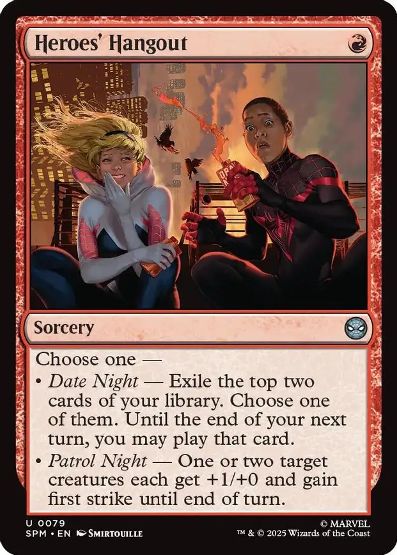Magic: the Gathering (mtg) Uncommon sorcery Heroes' Hangout from Marvel's Spider-Man (SPM) last updated 2026-01-17 17:46:32