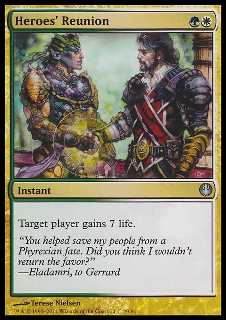 Magic: the Gathering (mtg) Uncommon Instant Heroes' Reunion from Duel Decks: Knights vs. Dragons (DDG) last updated 2026-02-21 17:08:32
