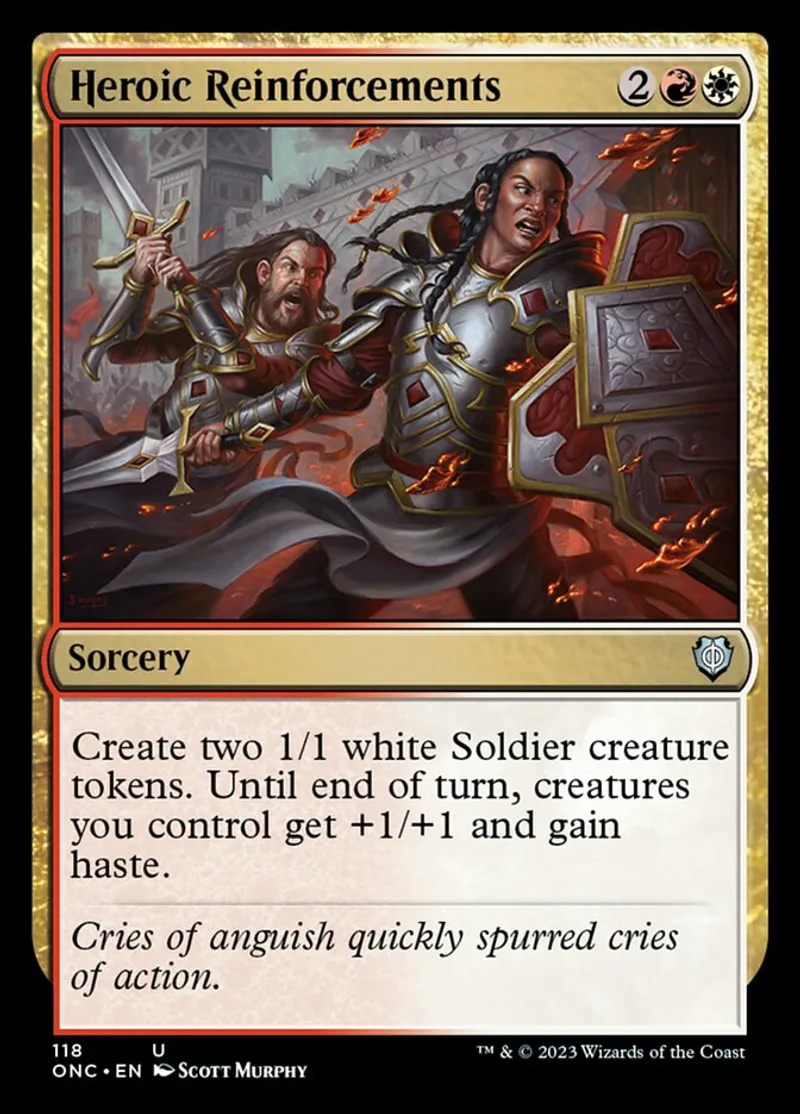 Heroic Reinforcements is a uncommon in the set Phyrexia: All Will Be One Commander.