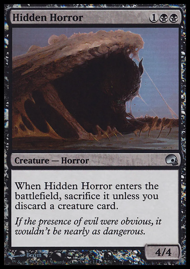 | Oracle Text | When Hidden Horror enters the battlefield, sacrifice it unless you discard a creature card. | ||
