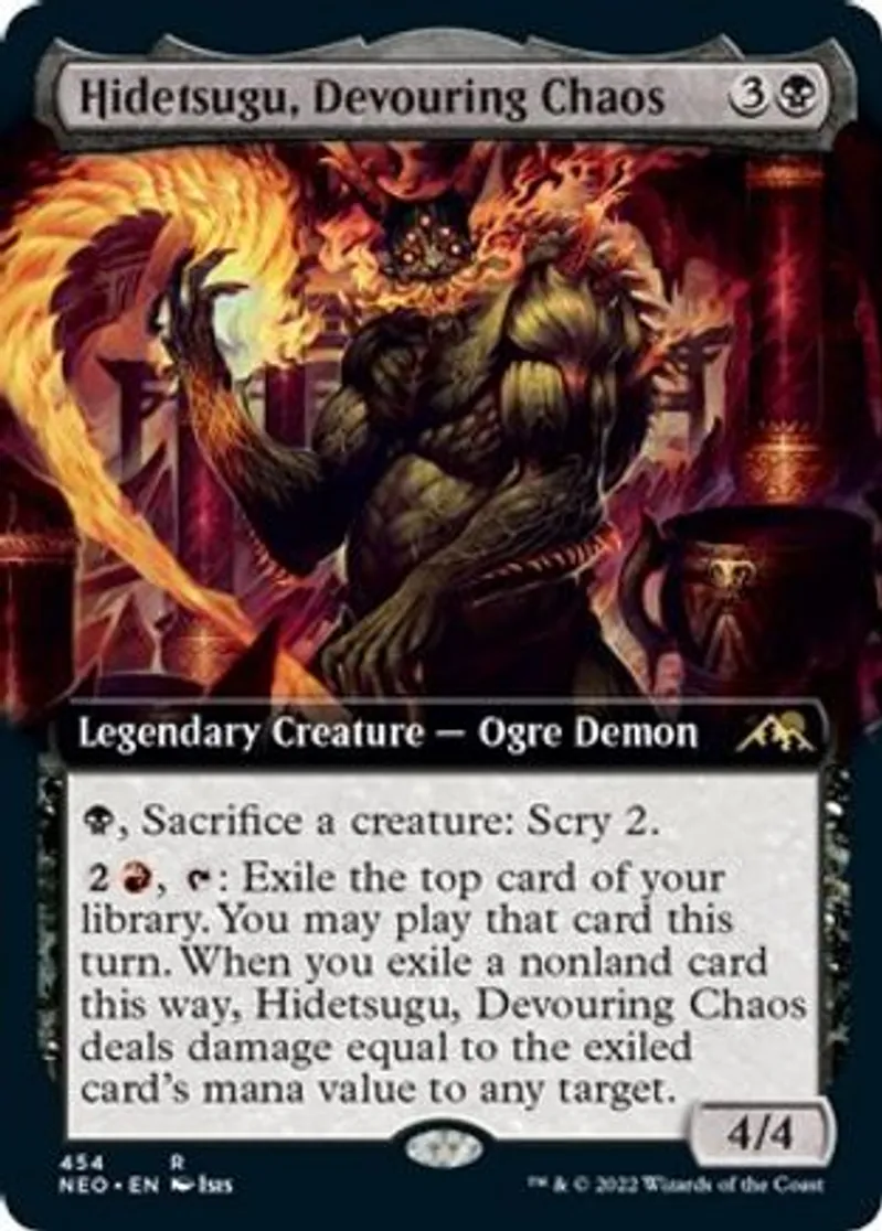 Hidetsugu, Devouring Chaos (Extended Art) is a Rare in the set Kamigawa: Neon Dynasty.