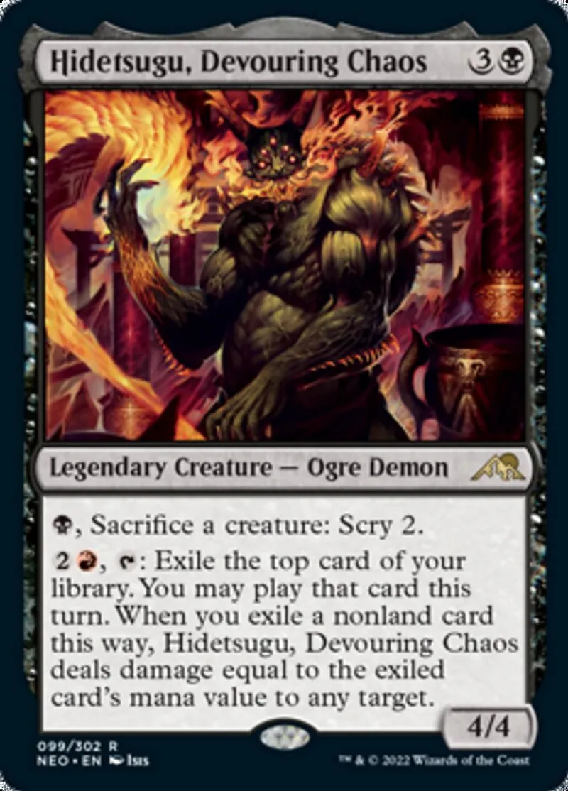 Hidetsugu, Devouring Chaos is a rare in the set Kamigawa: Neon Dynasty.