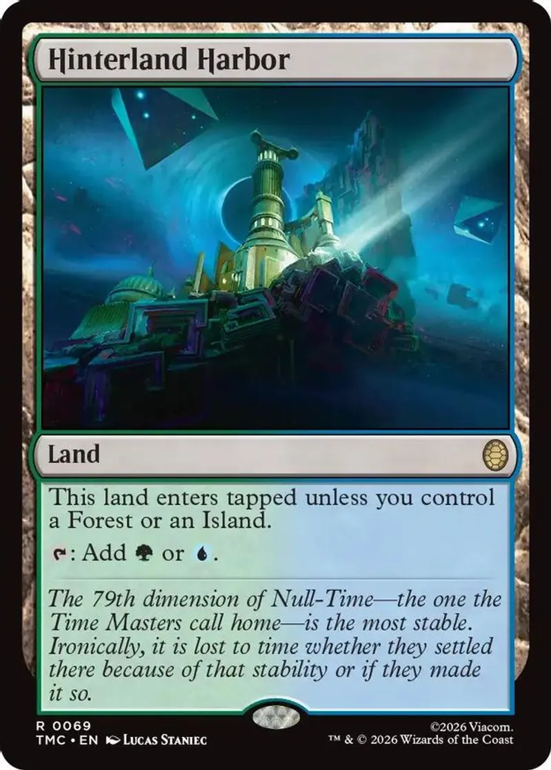 Magic: the Gathering (mtg) Rare land Hinterland Harbor from Commander: Teenage Mutant Ninja Turtles (TMC) last updated 2026-02-28 07:54:35