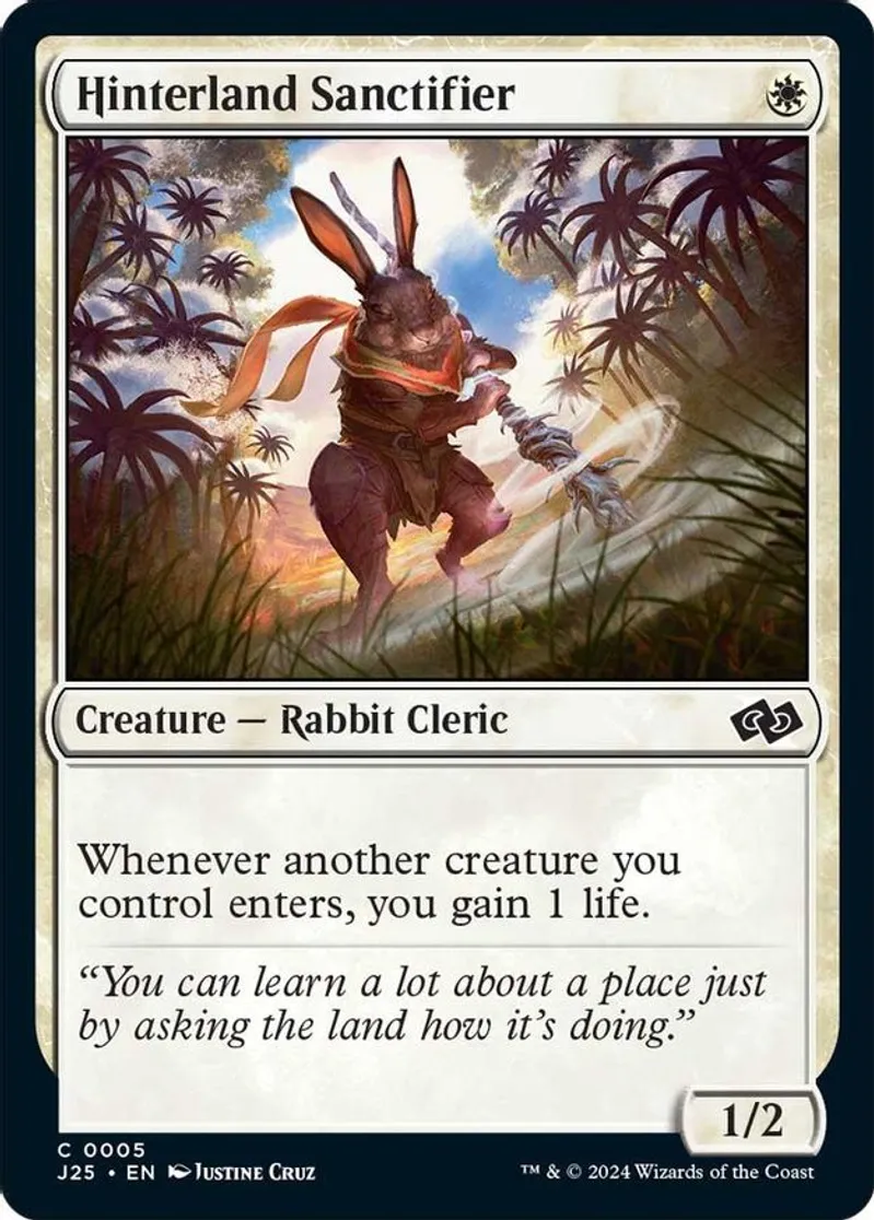 Magic: the Gathering (mtg) Common creature — rabbit cleric Hinterland Sanctifier from Foundations Jumpstart (J25) last updated 2026-04-11 15:34:03