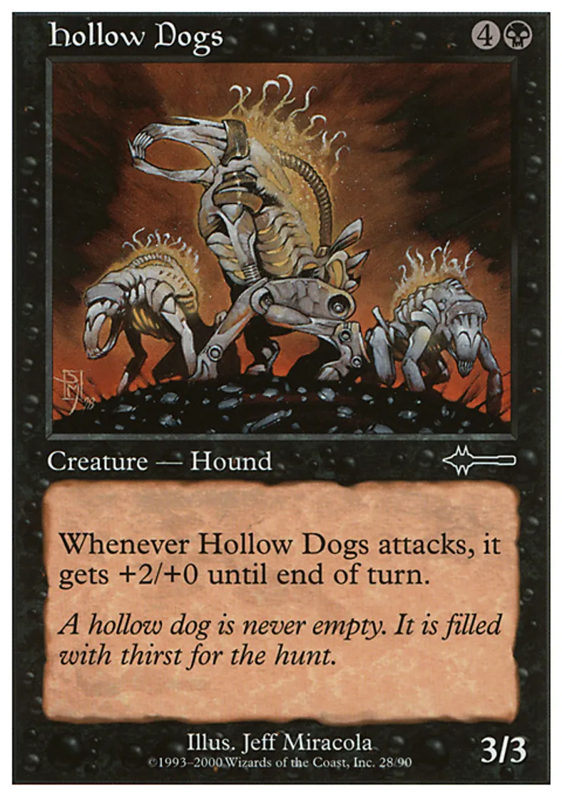 | Oracle Text | Whenever Hollow Dogs attacks, it gets +2/+0 until end of turn. | ||