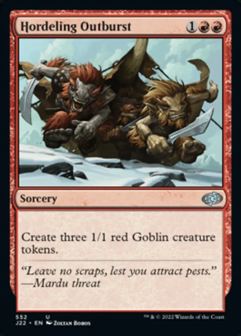 Hordeling Outburst is a uncommon in the set Jumpstart 2022.