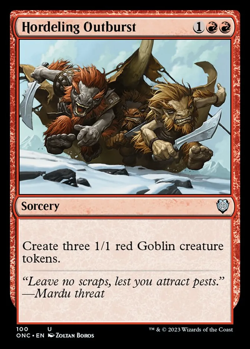 Magic: the Gathering (mtg) uncommon Sorcery Hordeling Outburst from Phyrexia: All Will Be One Commander (onc) last updated 2026-02-25 15:41:34