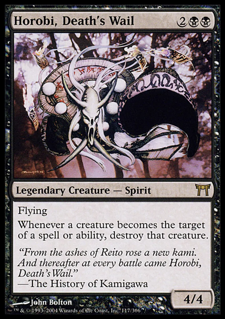 | Flavor Text | "From the ashes of Reito rose a new kami. And thereafter at every battle came Horobi, Death's Wail."—The History of Kamigawa | ||