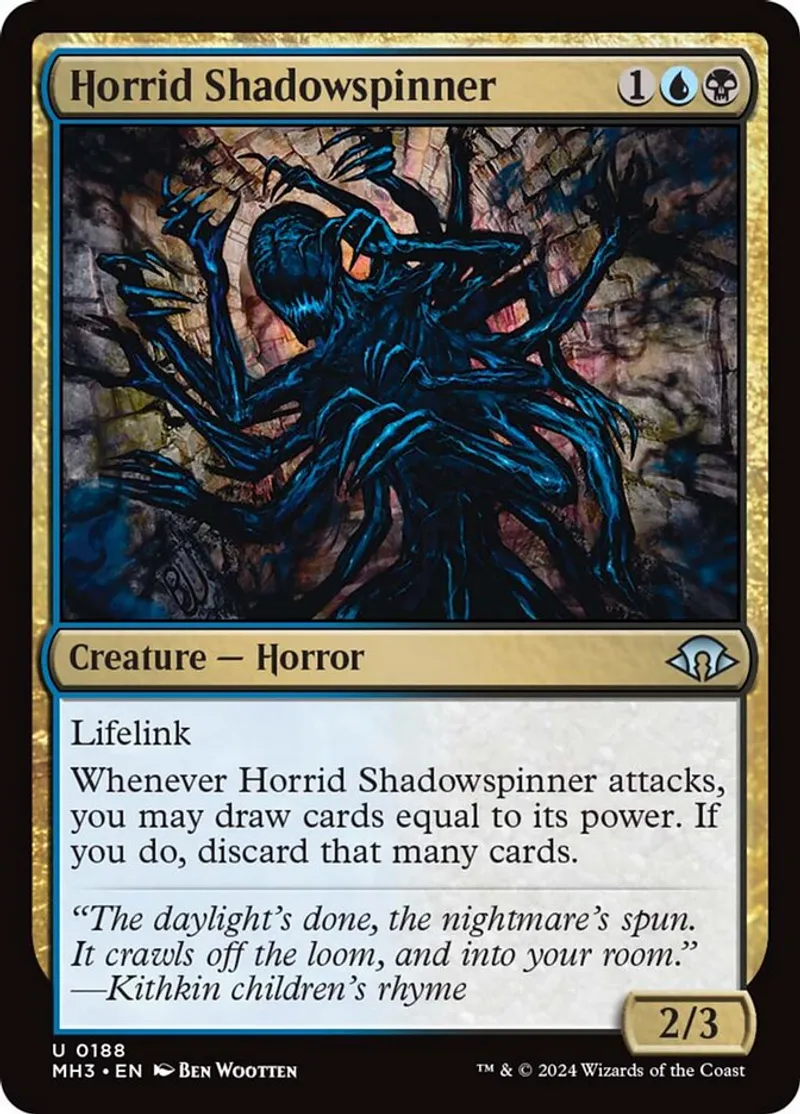 Magic: the Gathering (mtg) uncommon Creature — Horror Horrid Shadowspinner from Modern Horizons 3 (mh3) last updated 2025-12-06 15:19:32