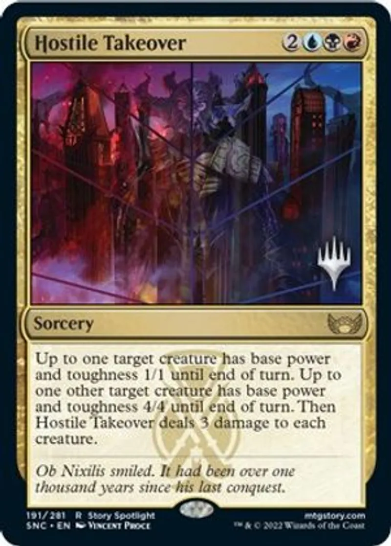 Magic: the Gathering (mtg) Rare Sorcery Hostile Takeover from Promo Pack: Streets of New Capenna (PSNC) last updated 2026-02-24 15:36:36