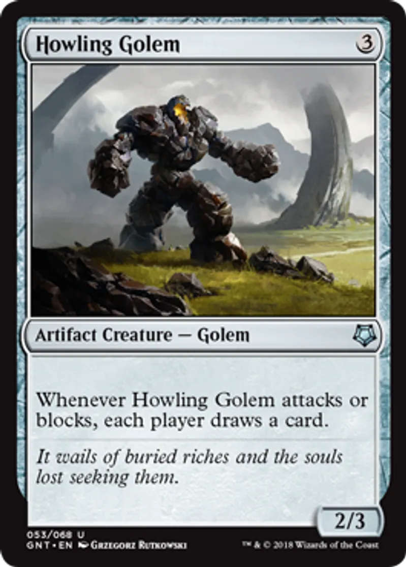 | Oracle Text | Whenever Howling Golem attacks or blocks, each player draws a card. | ||