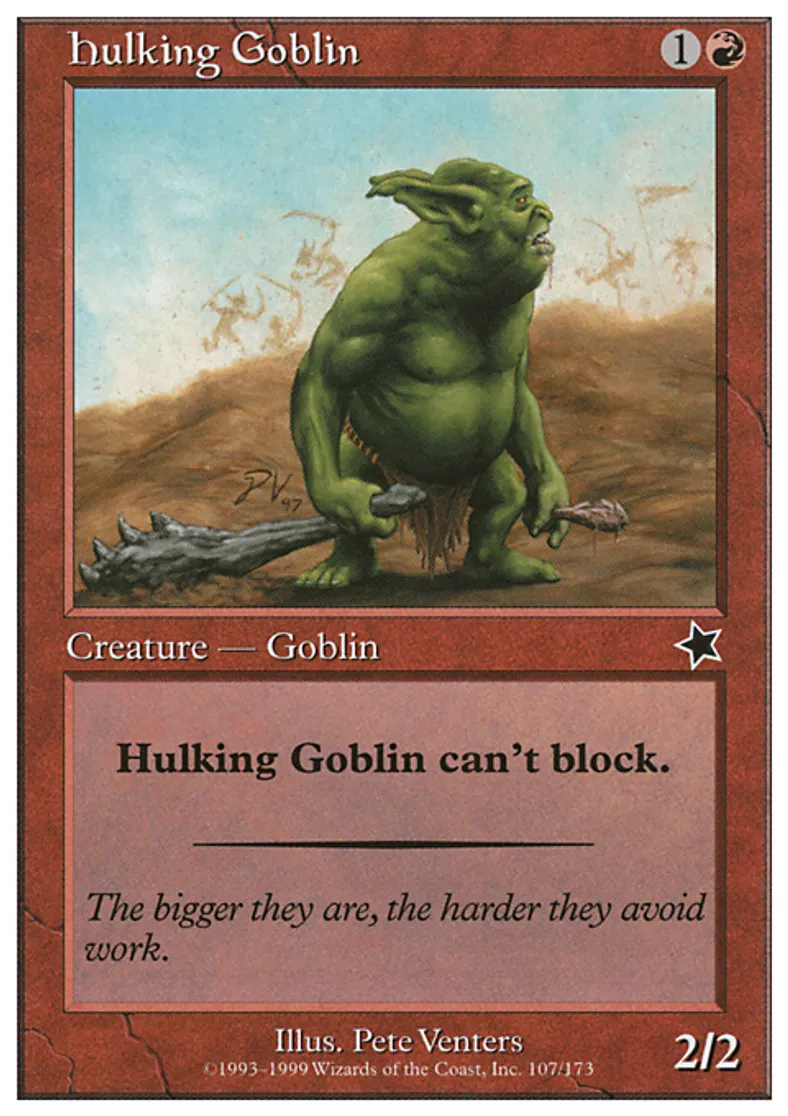 Magic: the Gathering (mtg) Common Creature - Goblin Hulking Goblin from Starter 1999 (S99) last updated 2026-02-21 17:34:32