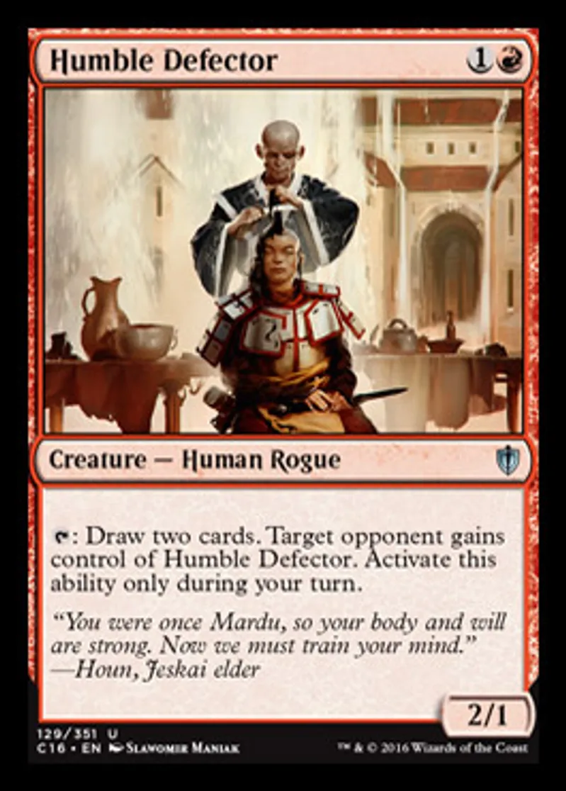 | Oracle Text | {{t}}: Draw two cards. Target opponent gains control of Humble Defector. Activate this ability only during your turn. | ||