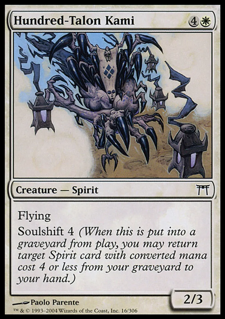 Magic: the Gathering (mtg) Common Creature - Spirit Hundred-Talon Kami from Champions of Kamigawa (CHK) last updated 2026-02-21 17:41:36
