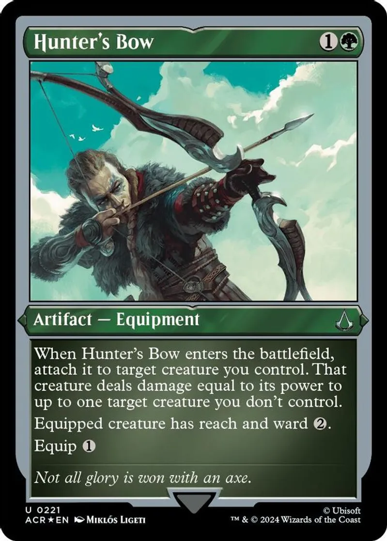 Magic: the Gathering (mtg) Uncommon artifact — equipment Hunter's Bow from Assassin's Creed (ACR) last updated 2025-12-20 15:21:36