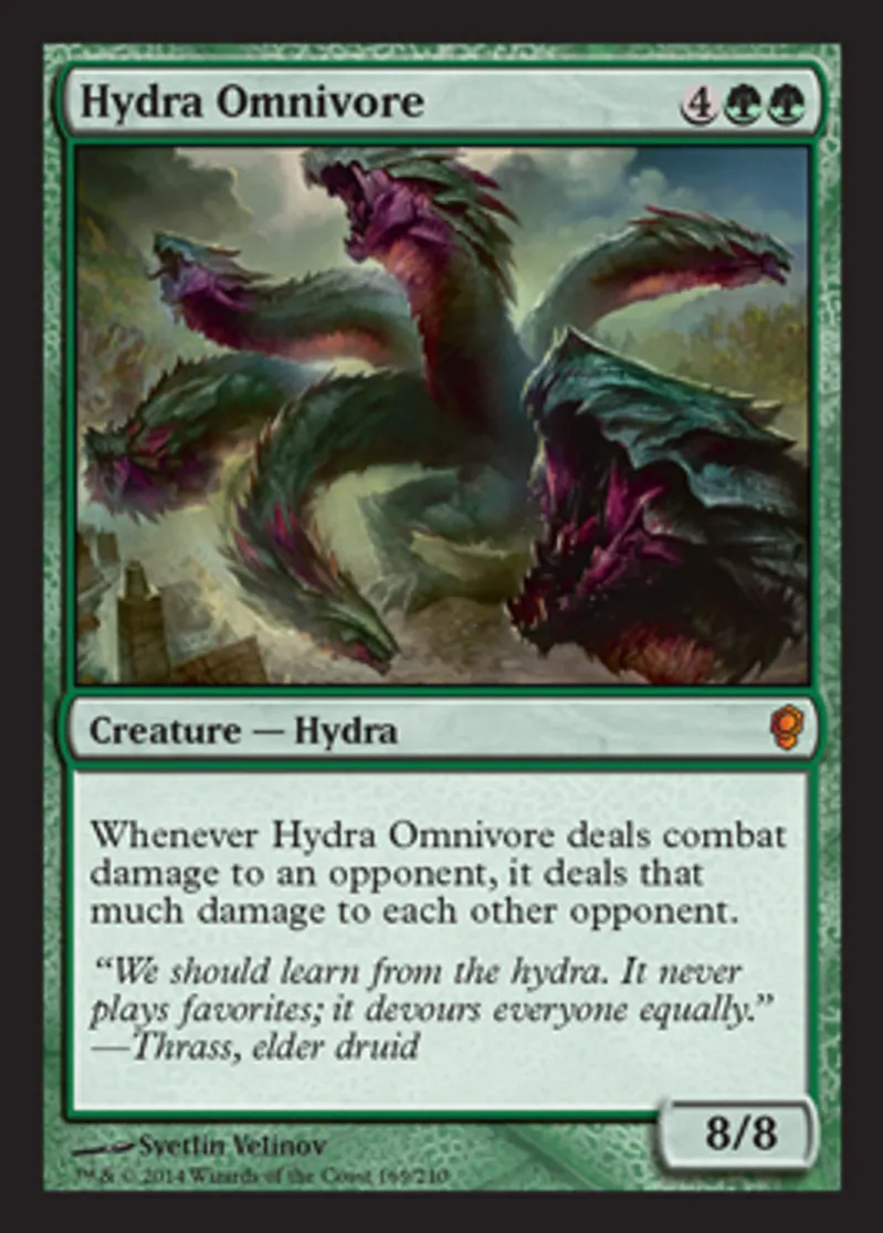 | Oracle Text | Whenever Hydra Omnivore deals combat damage to an opponent, it deals that much damage to each other opponent. | ||