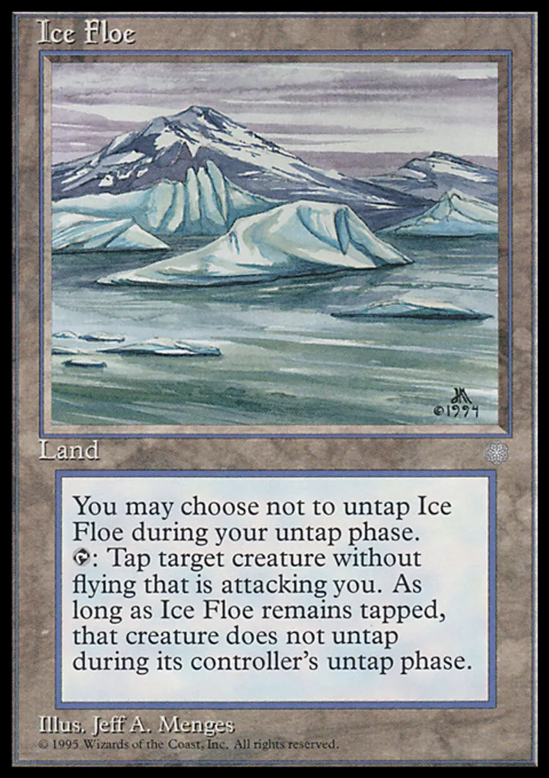 | Oracle Text | You may choose not to untap Ice Floe during your untap step. {{t}}: Tap target creature without flying that's attacking you. It doesn't untap during its controller's untap step for as long as Ice Floe remains tapped. | ||