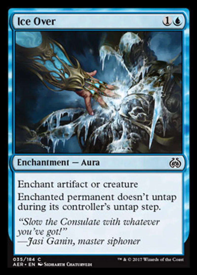 Magic: the Gathering (mtg) Common Enchantment - Aura Ice Over from Aether Revolt (AER) last updated 2026-02-21 17:27:36