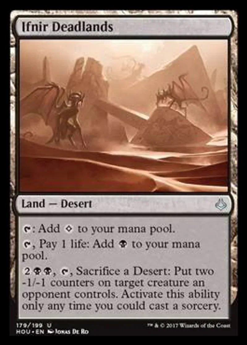 Magic: the Gathering (mtg) Uncommon Land - Desert Ifnir Deadlands from Hour of Devastation (HOU) last updated 2026-02-24 16:04:36