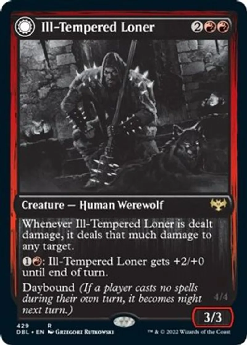 Magic: the Gathering (mtg) Rare Creature — Human Werewolf Ill-Tempered Loner from Innistrad: Double Feature (dbl) last updated 2026-02-25 14:53:32