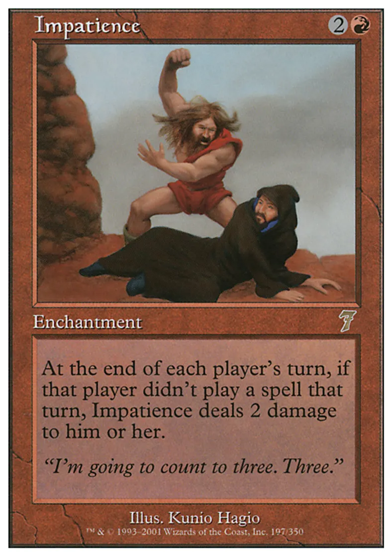 Magic: the Gathering (mtg) Rare Enchantment Impatience from Seventh Edition (7ED) last updated 2026-02-25 14:45:33